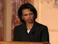 Rice said the United States acknowledges the right of the Iranian people to civil nuclear energy, but said the country's history of violating its commitments and working on a secret nuclear program mean it must now "persuasively demonstrate" that it is not pursuing nuclear weapons.