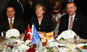 Turkey's EU chief negotiator Ali Babacan (L) during Iftar, a dinner for
