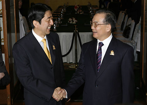 hands with China's Prime Minister Wen Jiabao before a bilateral meeting