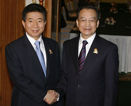 shakes hands with China's Prime Minister Wen Jiabao before their bilateral