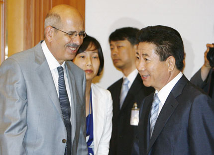 (IAEA) Director General Mohamed El Baradei (L) and South Korean President