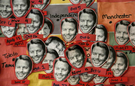A map showing campaign stops by US Democratic presidential candidate and former Senator John Edwards (D-NC) is displayed at the John Edwards for President office in Cedar Rapids, Iowa January 3, 2008. [Agencies]