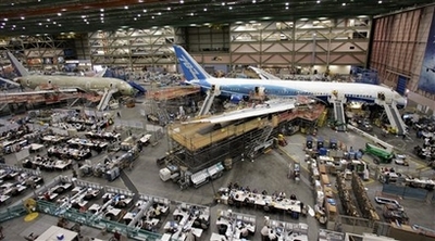 The 787 Dreamliner, the world's first mostly composite commercial airplane, rolled out of the hangar on July 8 last year with great fanfare, but it has failed to enter into commercial service due to repeated delays in deliveries. To defuse disappointment and confusion that might be resulted from such delays, Boeing invited a group of domestic and foreign reporters to the dreamliner's assembly site in Everett, Seattle, on Monday to take a close look at production. The program has overcome parts shortages and hiccups in its new, decentralized manufacturing model and is making steady progress toward the airliner's much-delayed first flight, said Patrick Shanahan, General Manager of the program. The jetliners "is on track" for a June "power on" milestone, and subsequent planes are arriving at the final assembly floor in better and better shape, he added. Most of 787's major parts are outsourced around the world before they are shipped to Everett for final assembly. Since October, Boeing has announced three major 787 delays, but Boeing CEO James McNerney has said Boeing finally has a revised schedule that it can meet -- first flight in the fourth quarter, initial deliveries pushed back from May until the third quarter of 2009, and 25 Dreamliners delivered by the end of 2009 rather than 112 as originally planned. The company said in a press release that despite the delays, the 787 market "remains strong." Since Boeing launched the program in 2004, 58 customers have placed orders for 896 airplanes from six continents of the world valued at US$151 billion, making this the most successful launch of a new commercial airplane in Boeing's history, according to the release. But failure to deliver the airplanes on time will likely cost the company billions of dollars in additional costs and penalties. Described as environment-friendly, Boeing said the 787 will use 20 percent less fuel per passenger than similarly sized airplanes, produce fewer carbon emission, and have quieter takeoffs and landings. The passengers will have more humid air and larger windows in the cabin, as well as softer lighting automatically adjusting with the time of day or night, the company said. |