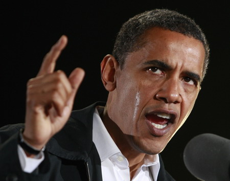 A tear runs down the face of US Democratic presidential nominee Senator Barack Obama (D-IL) as he speaks about his grandmother who died earlier on Monday, during a campaign rally in Charlotte, North Carolina November 3, 2008. On the eve of Tuesday's US presidential election, Obama's grandmother Madelyn Dunham died after a battle with cancer. [Agencies]