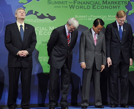 "This weekend's G20 summit failed to deliver any new stimulus measures to rescue the world economy from the current recession, but at least it avoided the knee-jerk responses (such as rushed regulation) that would have made things worse," Julian Jessop at London-based Capital Economics said in a report. "The real purpose of this summit was to agree a work program for reform of the global financial system. In that respect we would suggest that it has been a success." The G20 statement said that all financial markets, products and participants would be subject to supervision, vowed tougher accounting rules, a review of compensation practices and greater cooperation between national regulators. Even the long-running Doha round of free-trade talks was given a new lease on life. US President-elect Barack Obama sent emissaries to the event, and issued a statement in support of a coordinated response to the global financial crisis.With a $700 billion fund promised to stabilize the battered US financial system, the outgoing Bush administration and its successor must tackle the urgent question of how, or whether, to rescue the nation's "big three" automakers. The Senate is due on Monday to begin debating emergency legislation to provide $25 billion in aid to General Motors Corp, Ford Motor Co and Chrysler LLC. As well, US Treasury Secretary Henry Paulson is due to speak on the economy and markets later on Monday. |