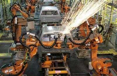 In this Sept. 12, 2008 file photo, assembly line robots weld the front cab of Chrysler's new 2009 Dodge Ram pickup being assembled at the Warren Truck Plant in Warren, Mich. Chrysler LLC on Wednesday, Dec. 17, 2008 said it would extend its holiday for an additional three weeks to adjust production with slowing demand and conserve cash. The move affects all 30 manufacturing plants. Operations will be idled at the end of the Friday, Dec. 19th shift. The earliest plants will reopen is Jan. 19, 2009. A few plants will reopen on Jan. 26. [Agencies]