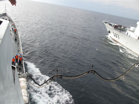 In the afternoon, the supply ship Weishanhu successfully refueled the two destroyers Wuhan and Haikou with several hundred tons of oil, an operation that an official for fleet support described as "highly efficient." The fleet will cruise for about 10 days before arriving in the Gulf of Aden to join a multinational patrol in one of the world's busiest sea lanes endangered by surging piracy. The recent pirate attack on a Chinese fishing vessel has raised great concern of the Chinese government and people. Statistics showed that some 1,265 Chinese commercial vessels have passed through the gulf so far this year and seven have been attacked. The UN Security Council has adopted four resolutions calling on all countries and regions to help patrol the gulf and waters off Somalia since June. The latest resolution authorized countries to take all necessary measures in Somalia, including in its airspace to stop the pirates. |