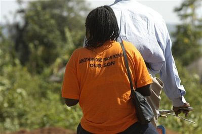 A woman sits on the back of a bicycle in the village of Kogelo, Kenya, Monday January 19, 2009 and wears a T-shirt which refers to the American President-elect Barack Obama. As Obama stands on the verge of becoming the first black US president Tuesday, he represents the pinnacle of a five-decade long struggle that stretches back to segregation. [Agencies]