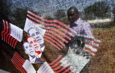 A vendor walks past souvenirs of US President-elect Barack Obama at the Barack Obama Nyang'oma Kogelo Primary School, 430km (267 miles) west of Kenya's capital Nairobi, January 19, 2009, during cultural celebrations in honour of Obama. [Agencies]