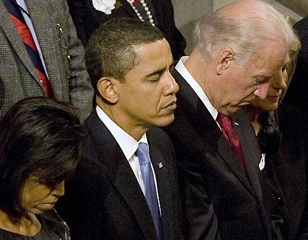 US President Barack Obama attends the National Prayer Service at the National Cathedral in Washington on his first official day as president, January 21, 2009. [Agencies]