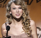 Singer Taylor Swift speaks onstage with her award for best female country vocal performance for "White Horse" during the pre-telecast of the 52nd annual Grammy Awards in Los Angeles.
