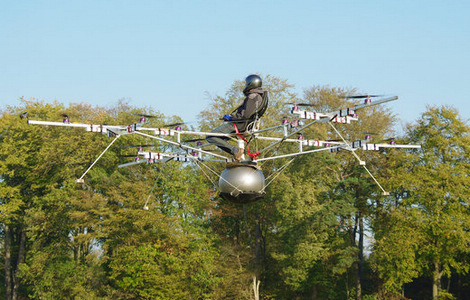 German engineer and founder of e-Volo, Thomas Senkel, flies a multicopter in Germany, Nov 5, 2011. It's the test flight of the multicopter. The multicopter is the world's first manned aircraft purely driven by electric power and can be classified as an ultra-light aircraft with 16 propellers. [Photo/CFP] |