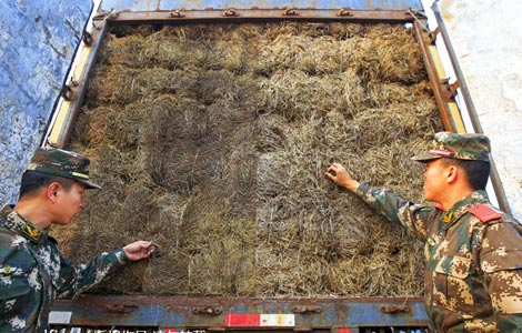 Anti-government protest leader Suthep Thaugsuban (R) greets his supporters as he leads thousands of anti-government protesters in a march in central Bangkok January 19, 2014. [Photo/Agencies] |