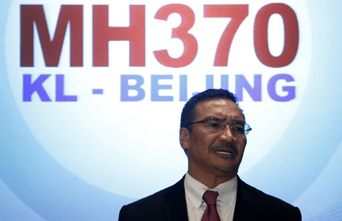 Malaysia's acting Transport Minister Hishammuddin Tun Hussein (C) speaks during a news conference about the missing Malaysia Airlines flight MH370, at Kuala Lumpur International Airport March 13, 2014.