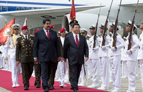 Beijing and Caracas Sunday boosted their relations as President Xi Jinping arrived on his first-ever state visit to the South American country.
