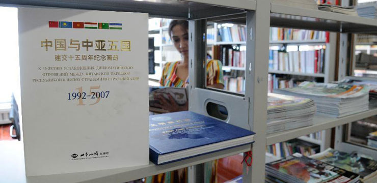 A Tajik girl reads a book at the Chinese Pavilion in Tajik National Library, Dushanbe, Tajikistan, Sep. 11, 2014. Leaders of the Shanghai Cooperation Organization (SCO) member states are gathering on Thursday and Friday in Dushanbe, capital of Tajikistan, for a summit.