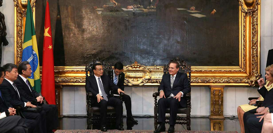 The further development of the China-Brazil relationship will need support from the legislative bodies of the two countries, Premier Li Keqiang said when he met with President Renan Calheiros of the Brazilian Federal Senate on May 19.