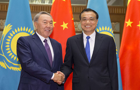 Chinese Premier Li Keqiang met with Kazakh President Nursultan Nazarbayev in Beijing on Tuesday.