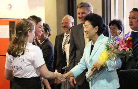 Students at the Confucius Institute at the University of Pittsburgh greet visiting Chinese Vice-Premier Liu Yandong on Friday afternoon.