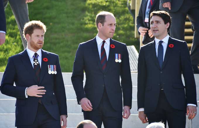 British royals and Canadian PM pay tribute to fallen soldiers in WWI