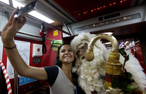 Santa Claus in a wagon of Sao Paulo subway in Brazil