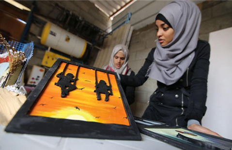 Palestinian artists use house remains to form paintings
