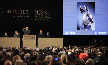 巴黎,2009年2月26日 圓明園流失文物鼠首和兔首分別以1400萬歐元落錘(新華社照片 )