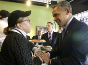 奧巴馬學校演講與米歇爾互動 第一夫人受寵若驚 奧巴馬突訪餐飲店老板娘格外激動 曾釀“命案”